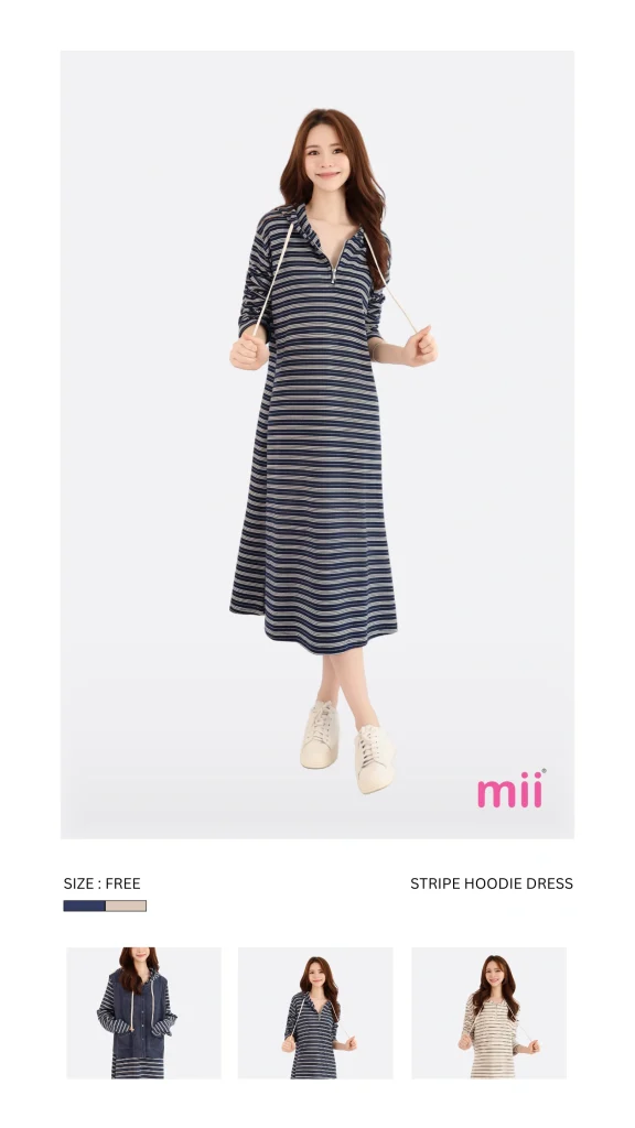 STRIPE HOODIE DRESS|Rm129